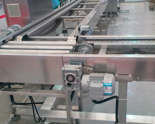自动输送生产线-TKM系列减速机在自动输送机械上的应用,直角空心轴安装方便,铝合金外壳与不锈钢的完美