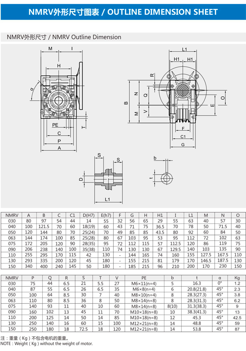 从025-150共10种机座规格;传递功率范围从60W-15KW